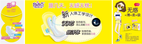 从“无感就是薄柔吸”,强化产品薄的优势;
